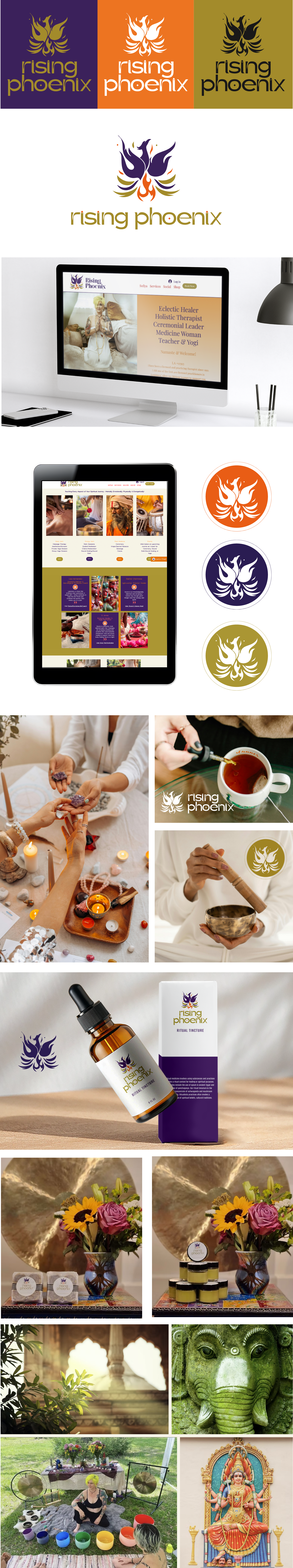 Sofiya, a yoga practitioner, massage therapist, energy worker, and healer, needed a bold and beautiful brand identity for her healing arts business – something to match the earthy vibrance she brings to everything she does. Rising Phoenix is a rooted, reverent, and quietly powerful brand, honoring ancient wisdom and deep respect for the practice of ceremonial medicine.